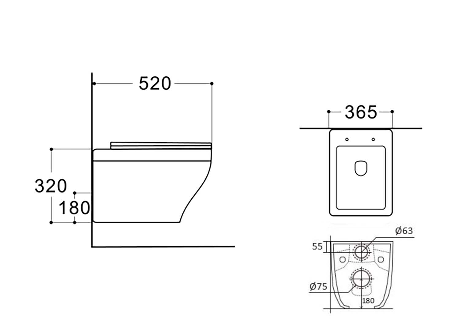 • Чаша унитаза безободковая 520x365x320