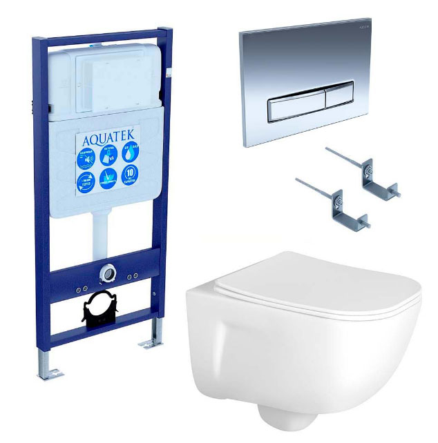 Сэт Акватек Дива 4в1 (унитаз AQ2012-00 + инсталляция INS-0000012 + клавиша KDI-0000023 + крепления KKI-0000002) SET AQUATEK ДИВА 4в1