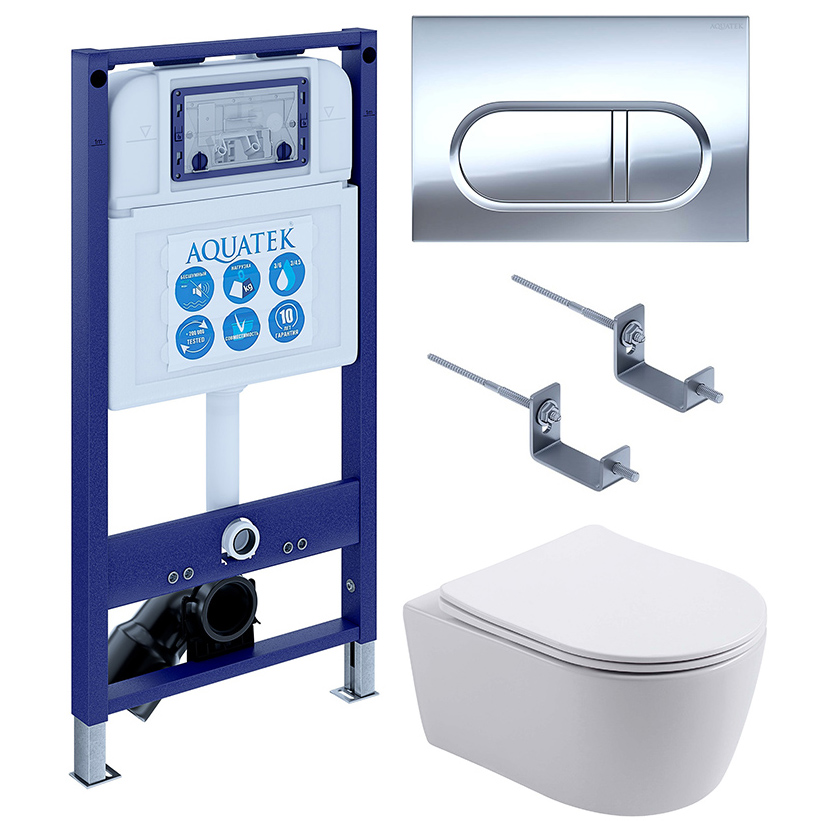 Сэт Акватек Европа New-043 4в1 (унитаз AQ1106L-00 +инсталляция INS-0000025+крепления KKI-0000002+кнопка KDI-0000043) SET AQUATEK ЕВРОПА New-043 4в1