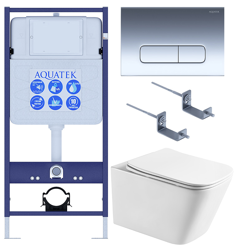 Сэт Акватек Либра T-016 4в1 (унитаз AQ1505T-00 Торнадо+ инсталляция INS-0000012+ клавиша KDI-0000016+ крепеж KKI-0000002) SET AQUATEK ЛИБРА T-016 4в1