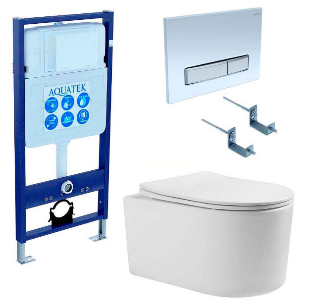 Сэт Акватек Мия 4в1 (унитаз AQ2004-00 + инсталляция INS-0000012 + клавиша KDI-0000022 + крепления KKI-0000002)