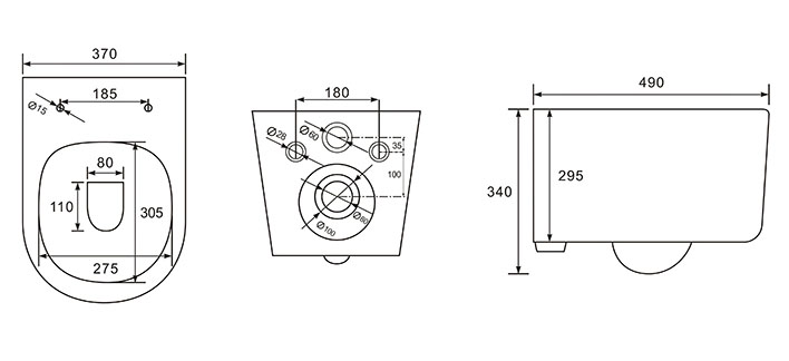 • Чаша унитаза безободковая 490*370*340