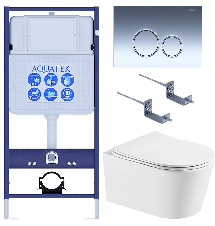 - Сэт Акватек Оберон T KDI18 (унитаз AQ1365T-00 Торнадо+ инсталляция INS-0000012+ клавиша KDI-0000018+ крепления KKI-0000002) SET AQUATEK ОБЕРОН T KDI18