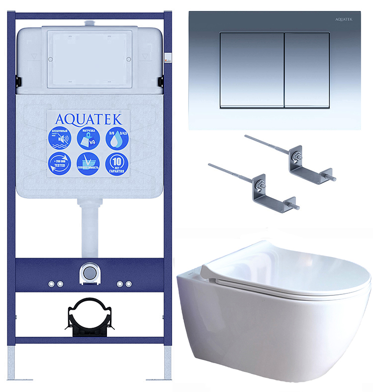 Сэт Акватек Поларис-01 010 4в1 (унитаз AQ0700-01+ инсталляция INS-0000012+ клавиша KDI-0000010+ крепления KKI-0000002) SET AQUATEK ПОЛАРИС-01-010 4в1