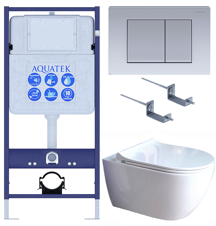 Сэт Акватек Поларис-01 011 4в1 (унитаз AQ0700-01+ инсталляция INS-0000012+ клавиша KDI-0000011+ крепления KKI-0000002) SET AQUATEK ПОЛАРИС-01-011 4в1
