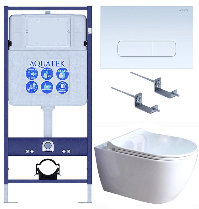 Сэт Акватек Поларис-01 013 4в1 (унитаз AQ0700-01+ инсталляция INS-0000012+ клавиша KDI-0000013+ крепления KKI-0000002) SET AQUATEK ПОЛАРИС-01-013 4в1