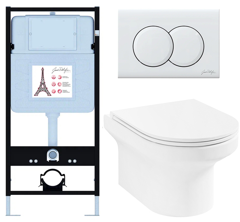 Сет Jacob Delafon (унитаз c инсталляцией Elite, сиденье тонкое микролифт, клавиша белый гл) E21743RU-00