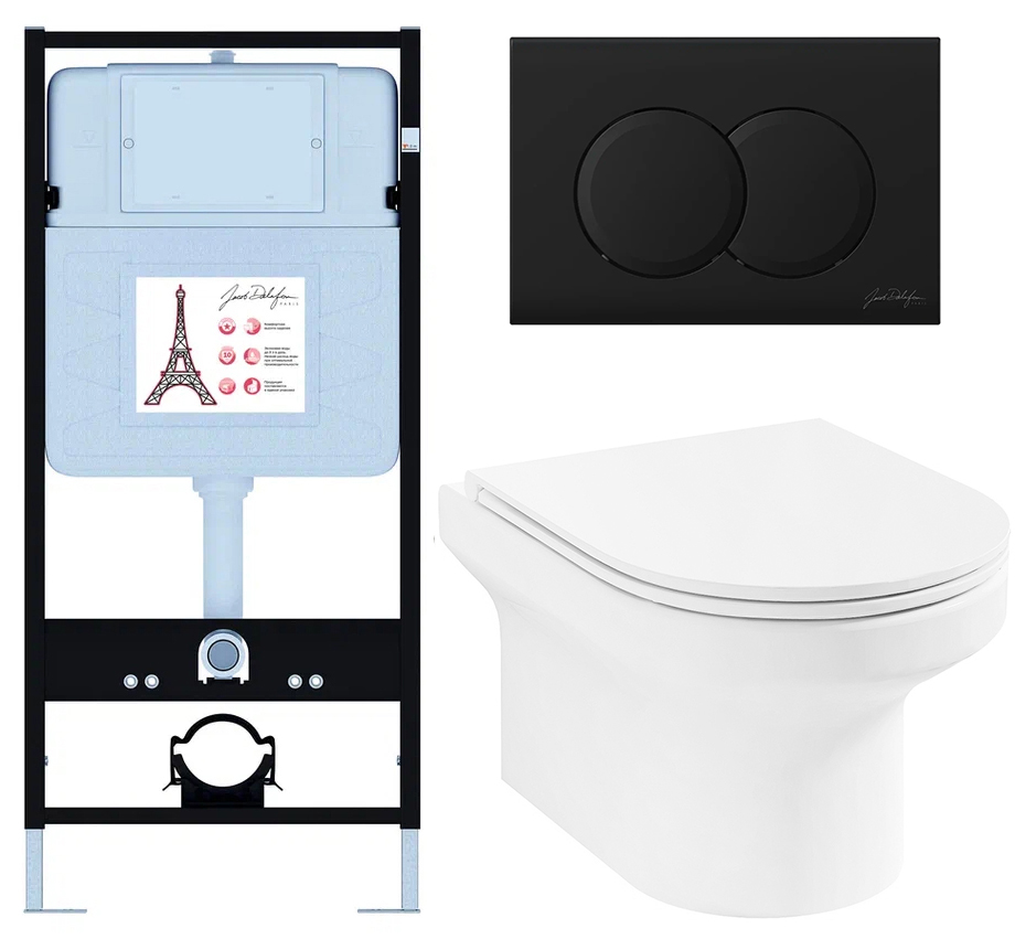 Сет Jacob Delafon (унитаз c инсталляцией Elite, сиденье тонкое микролифт, клавиша мат черный) E21743RU-BL