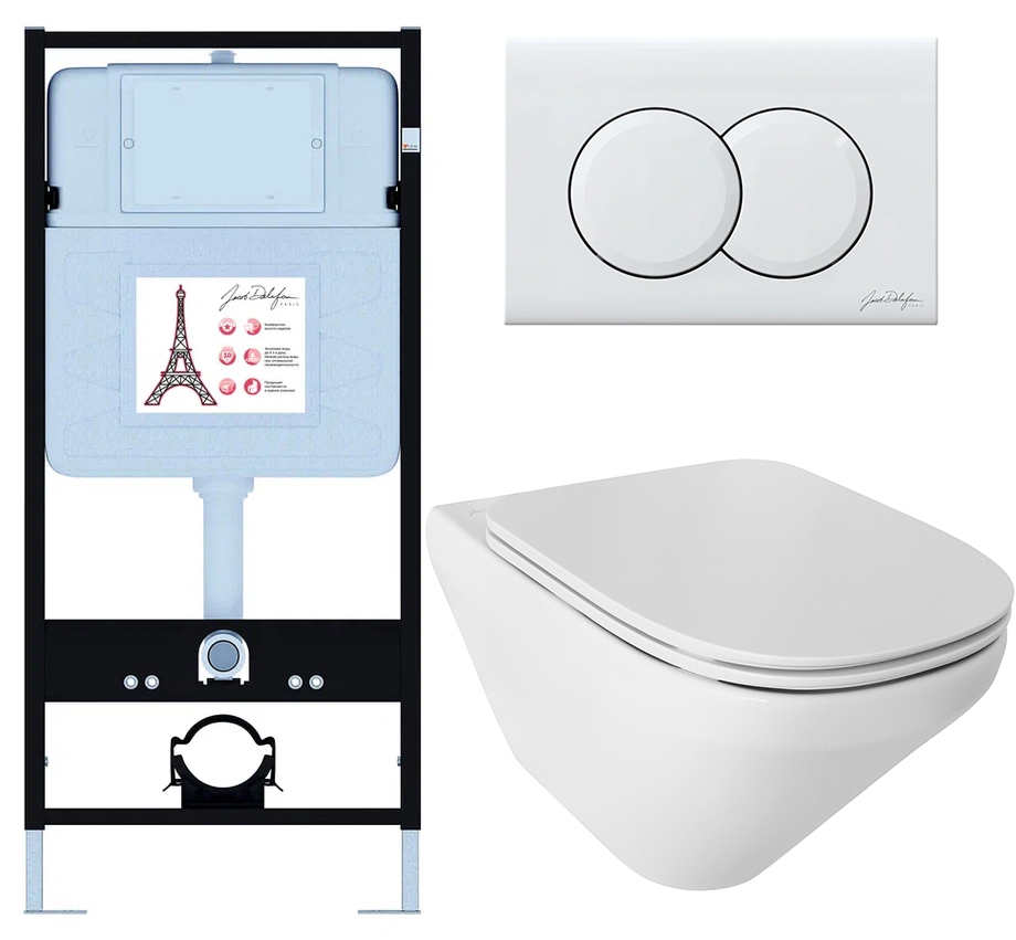 Сет Jacob Delafon (унитаз c инсталляцией Modern Life, сиденье тонкое микролифт, клавиша белый гл) E21775RU-00