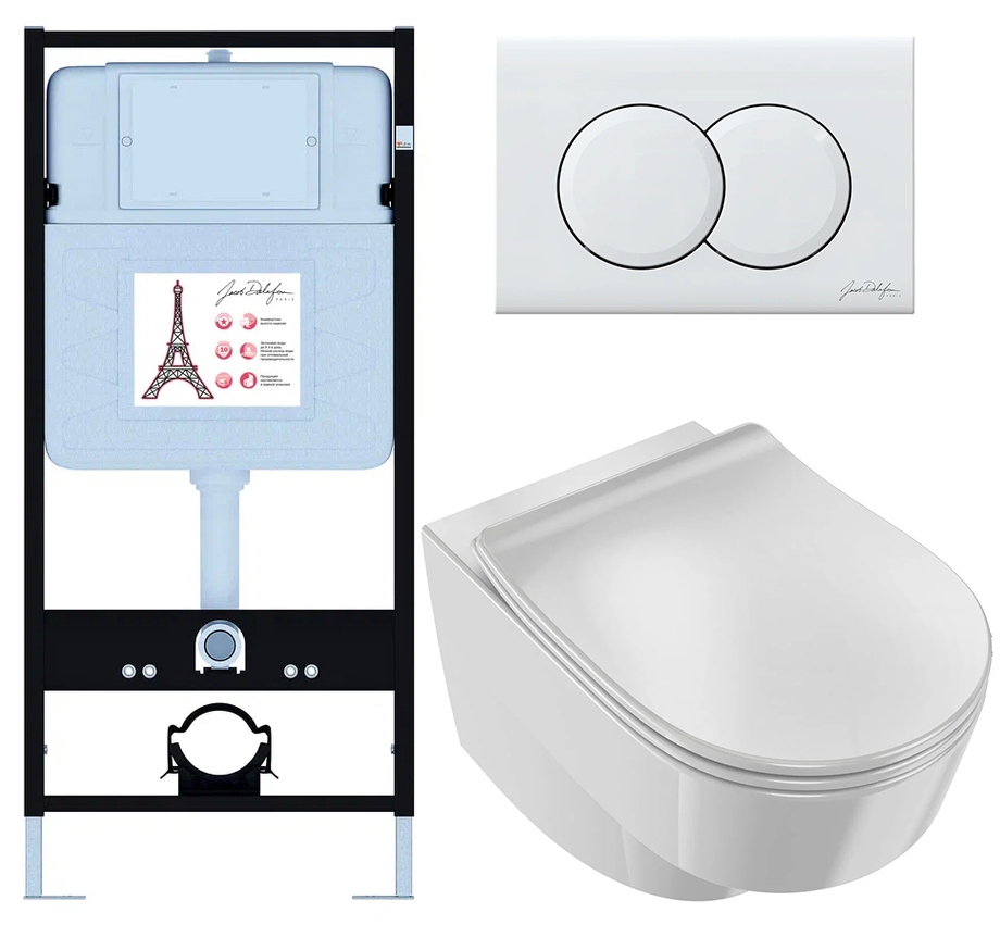 Сет Jacob Delafon (унитаз c инсталляцией Odeon Rive Gauche, сиденье тонкое микролифт, клавиша белый гл) EDR103-00