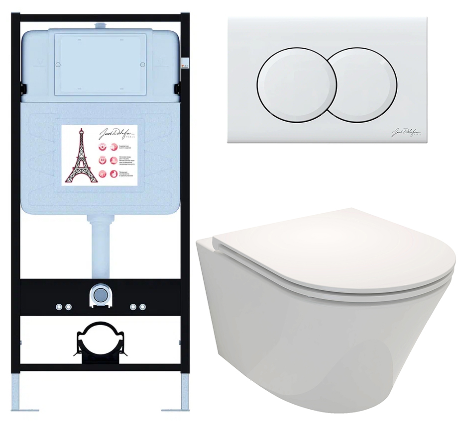 Сет Jacob Delafon (унитаз c инсталляцией Rodin+, сиденье тонкое микролифт, клавиша белый гл) E21750RU-00