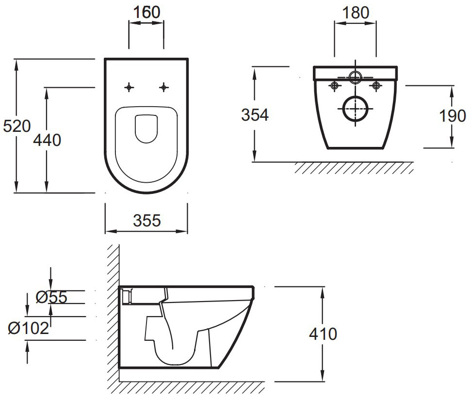 EDY102-00 - Унитаз подвесной БЕЗОБОДКОВЫЙ Jacob Delafon Rodin+ (52*35,5*35 см) с креплением