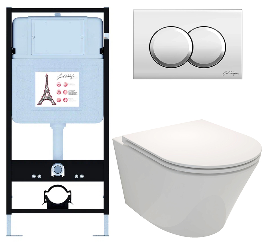 Сет Jacob Delafon (унитаз c инсталляцией Rodin+, сиденье тонкое микролифт, клавиша хром) E21750RU-CP