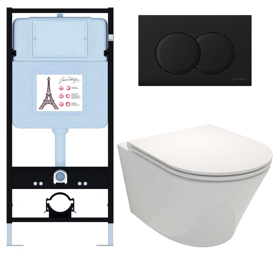 Сет Jacob Delafon (унитаз c инсталляцией Rodin+, сиденье тонкое микролифт, клавиша мат черный) E21750RU-BL