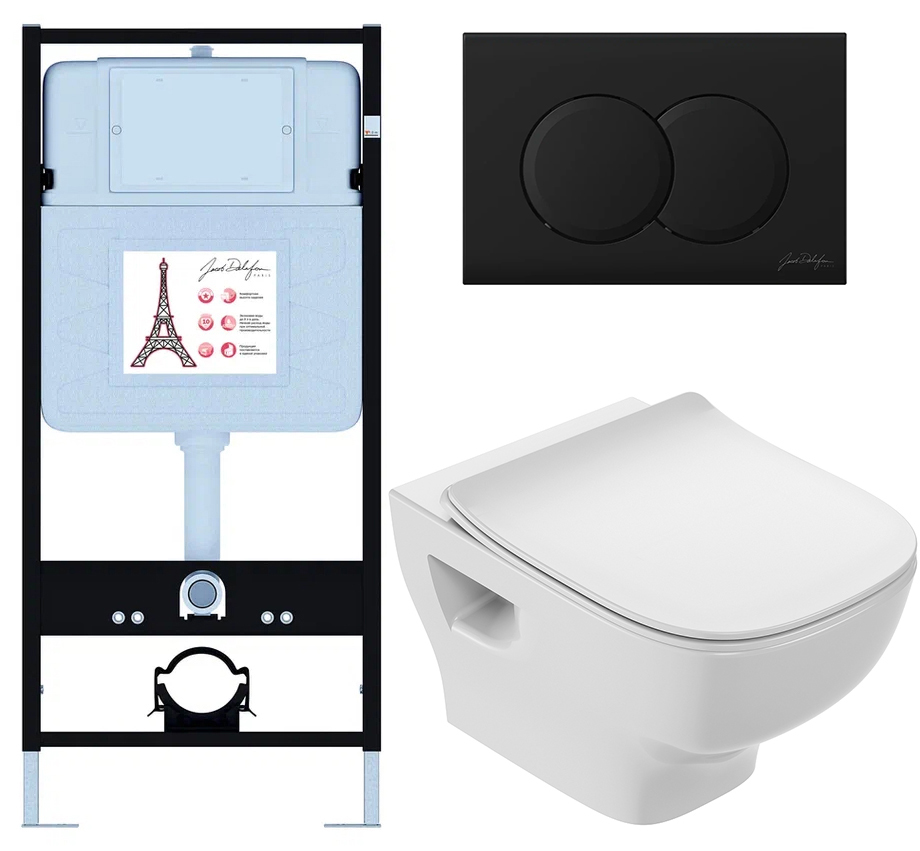 Сет Jacob Delafon (унитаз c инсталляцией Struktura 54см, сиденье тонкое микролифт, клавиша мат черный) EDE103-BL
