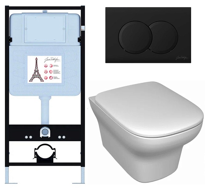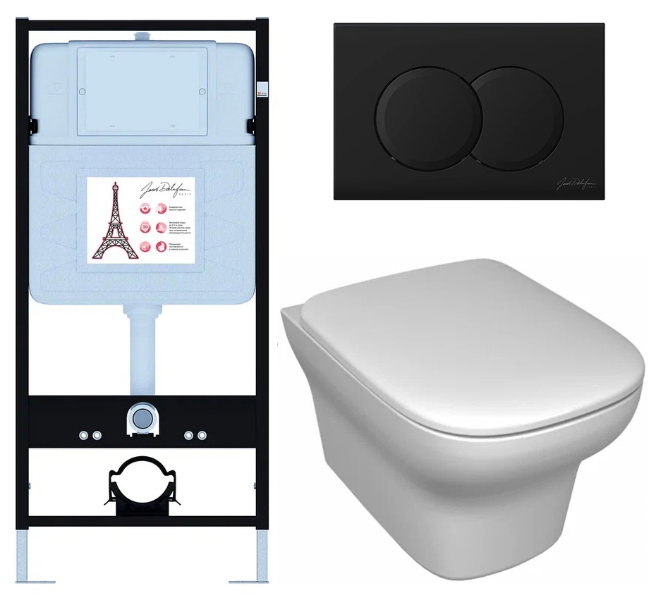 Сет Jacob Delafon (унитаз c инсталляцией Vox, сиденье тонкое микролифт, клавиша мат черный) E21747RU-BL