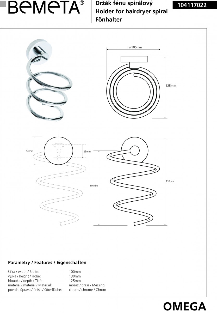 - Держатель фена Bemeta Omega 104117022