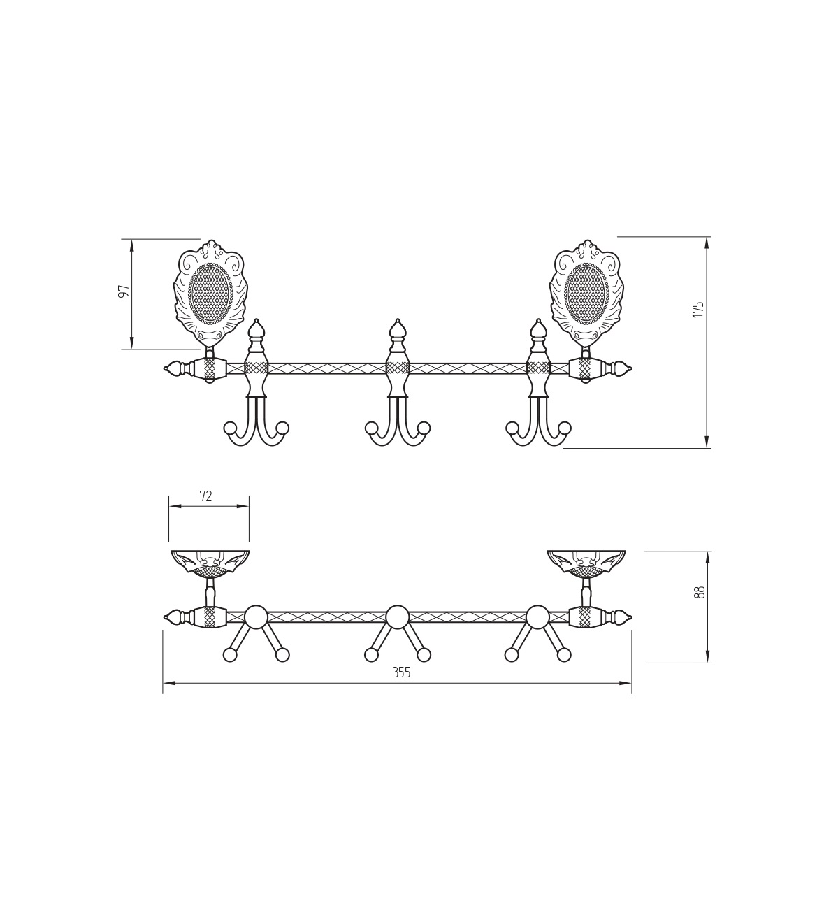Планка с 3-мя двойными крючками (40 см) Migliore Cleopatra 16663 хром