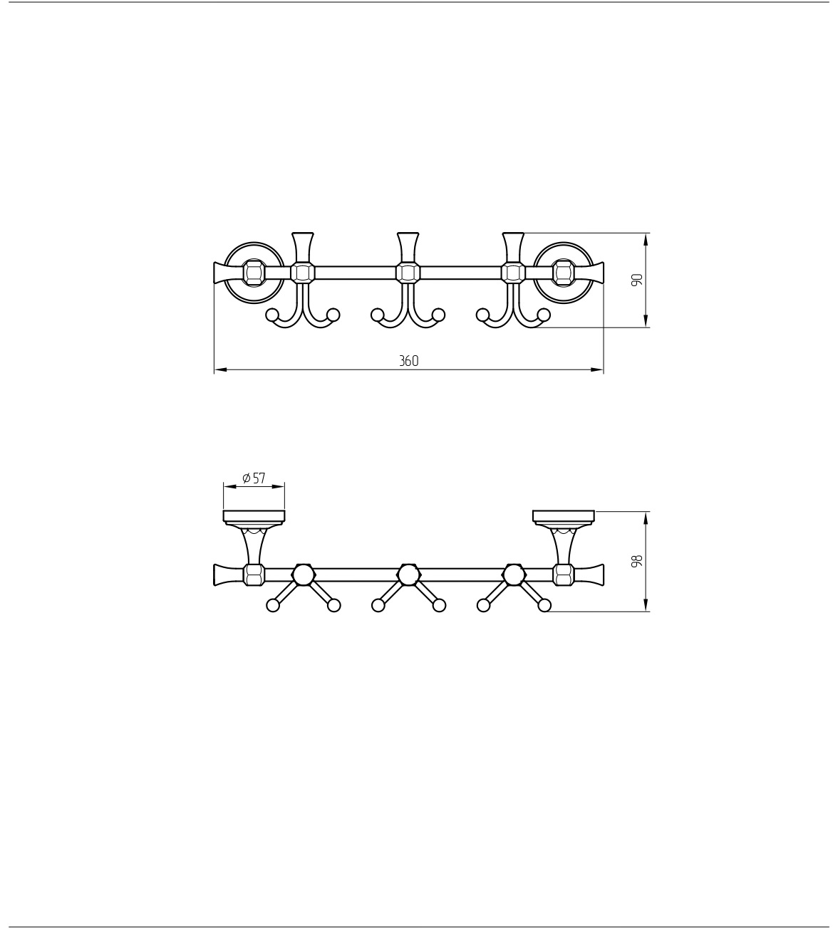 Планка с 3-мя двойными крючками Migliore Fortuna (37см) 27715 хром