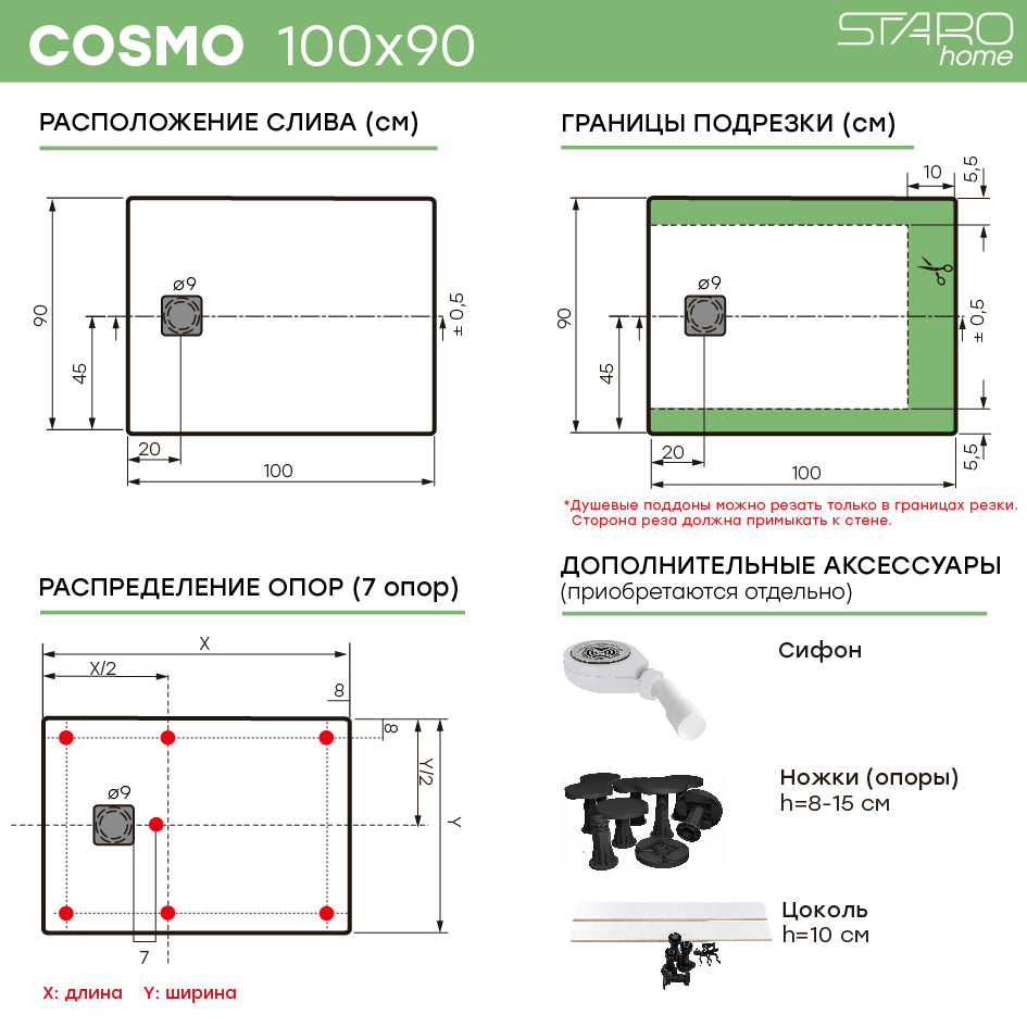 | Дополнительно | Сифон, ножки (опоры), цоколь |