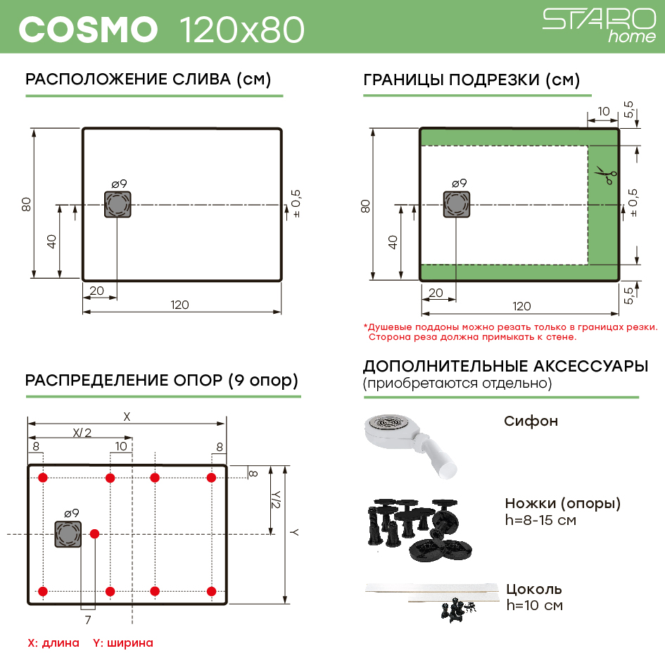 | Дополнительно | Сифон, ножки (опоры), цоколь |