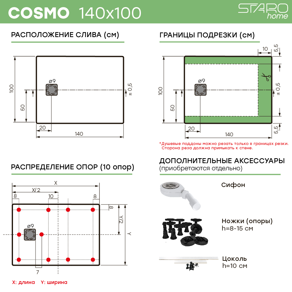 | Дополнительно | Сифон, ножки (опоры), цоколь |