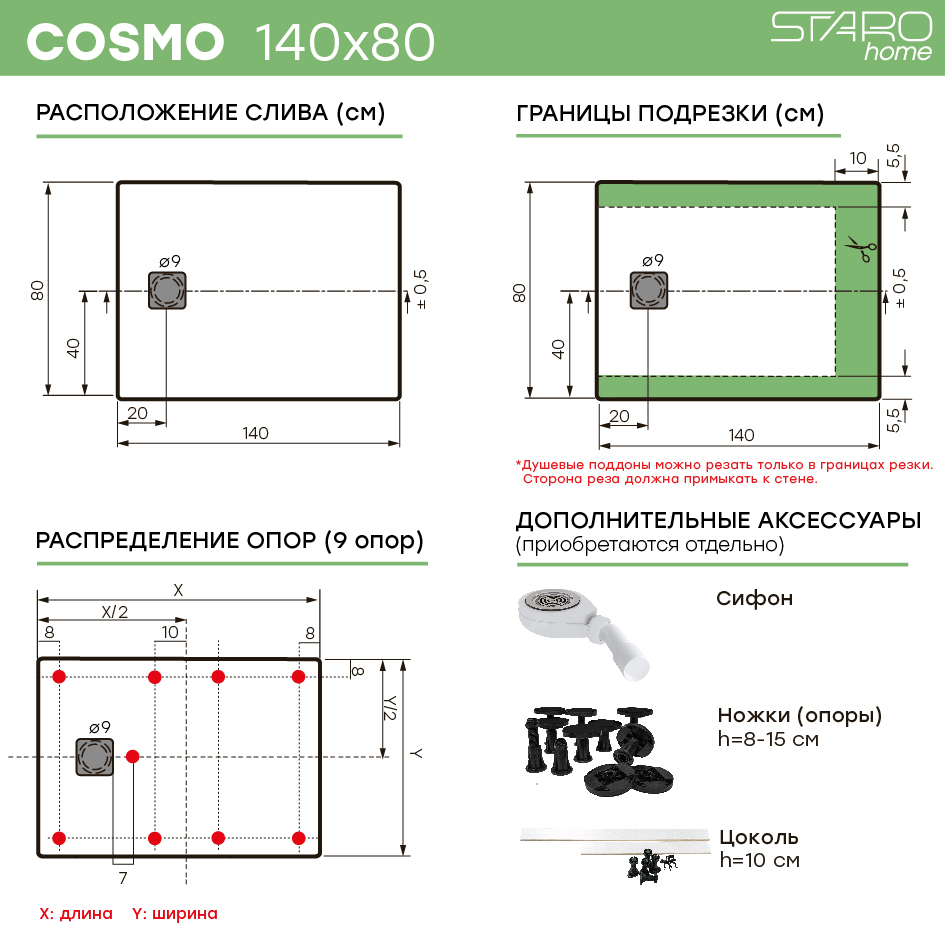 Душевой поддон из искусственного мрамора StaroHome Cosmo 140х80 White Matt УТ-00000089