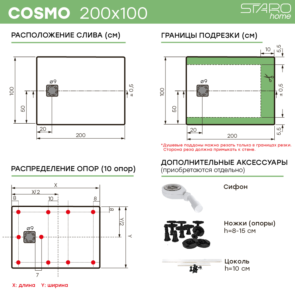 | Дополнительно | Сифон, ножки (опоры), цоколь |