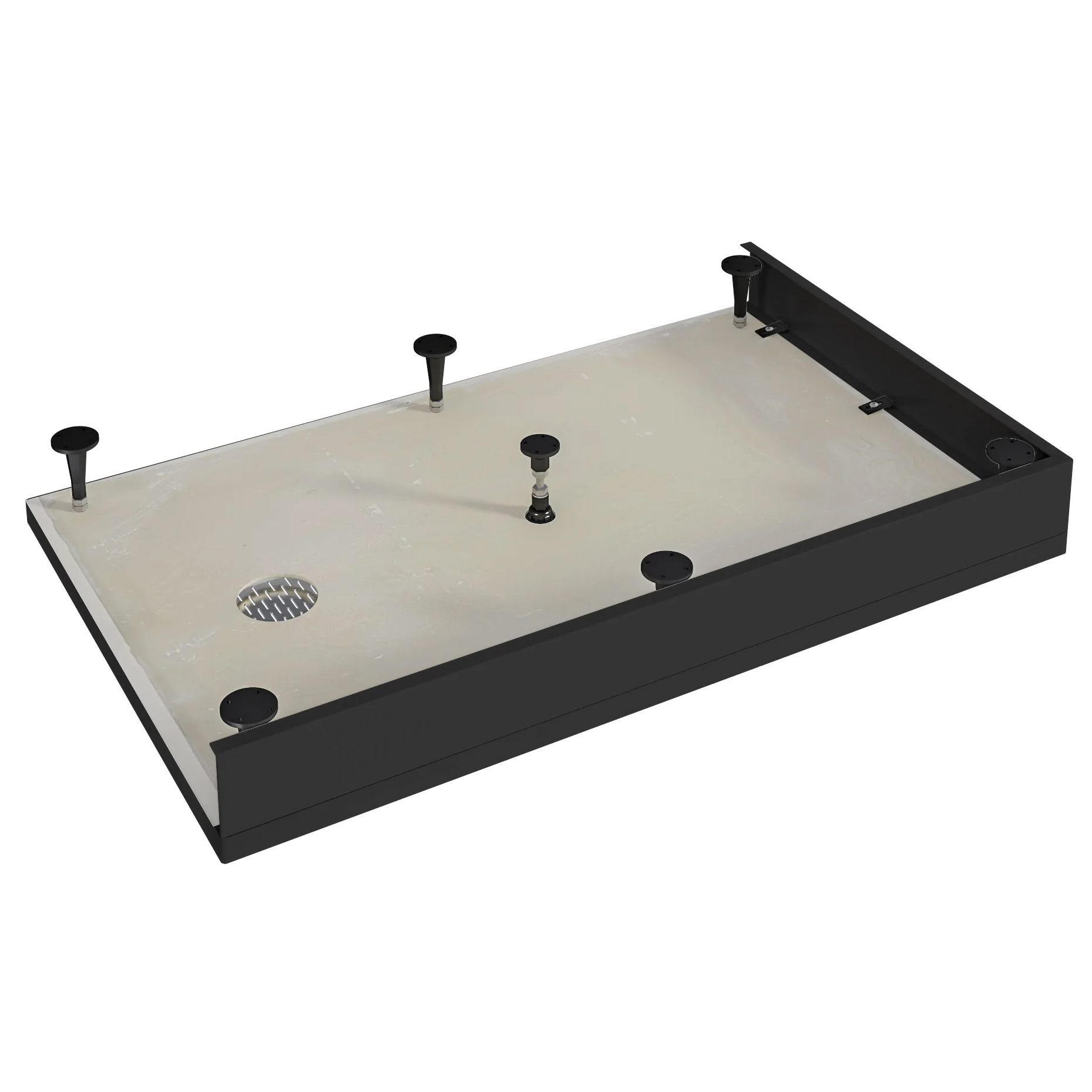 Поддоны из литьевого мрамора могут быть укомплектованы приставным экраном в цвет поддона, а также комплектом установочных ножек и сливом (диаметр отверстия под слив 90 мм). Благодаря своей правильной геометрии без прогибов, строгим линиям поддоны идеально подходят для установки Душевых ограждений группы компаний BAS.