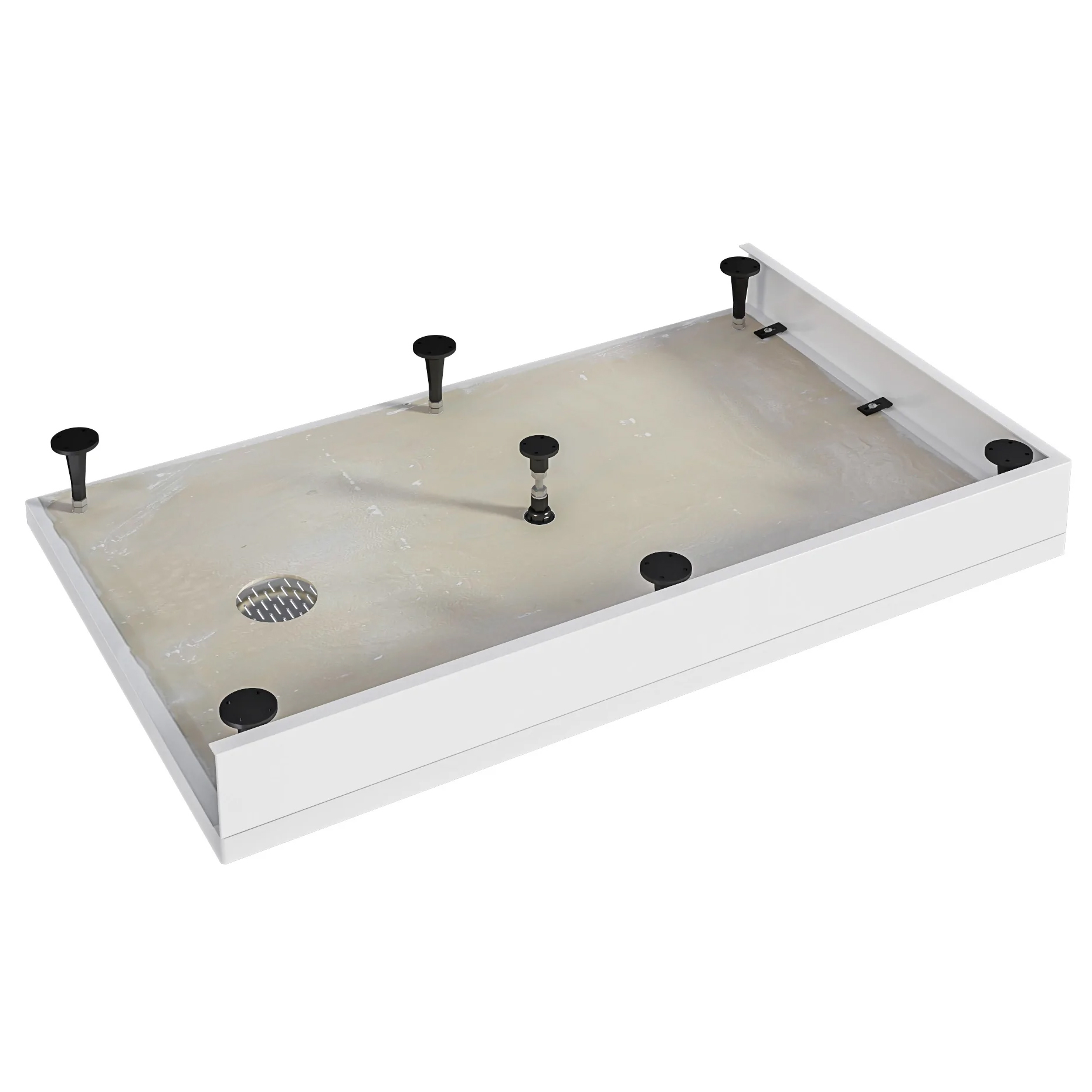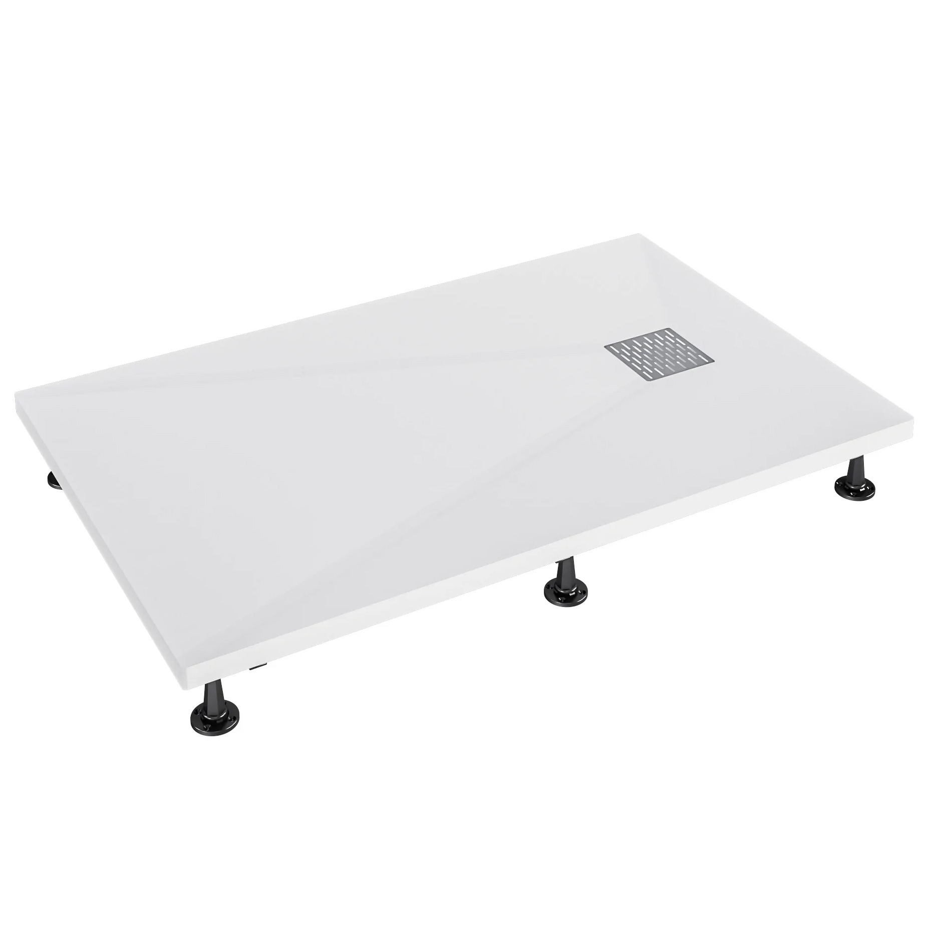Поддоны из литьевого мрамора могут быть укомплектованы приставным экраном в цвет поддона, а также комплектом установочных ножек и сливом (диаметр отверстия под слив 90 мм). Благодаря своей правильной геометрии без прогибов, строгим линиям поддоны идеально подходят для установки Душевых ограждений группы компаний BAS.