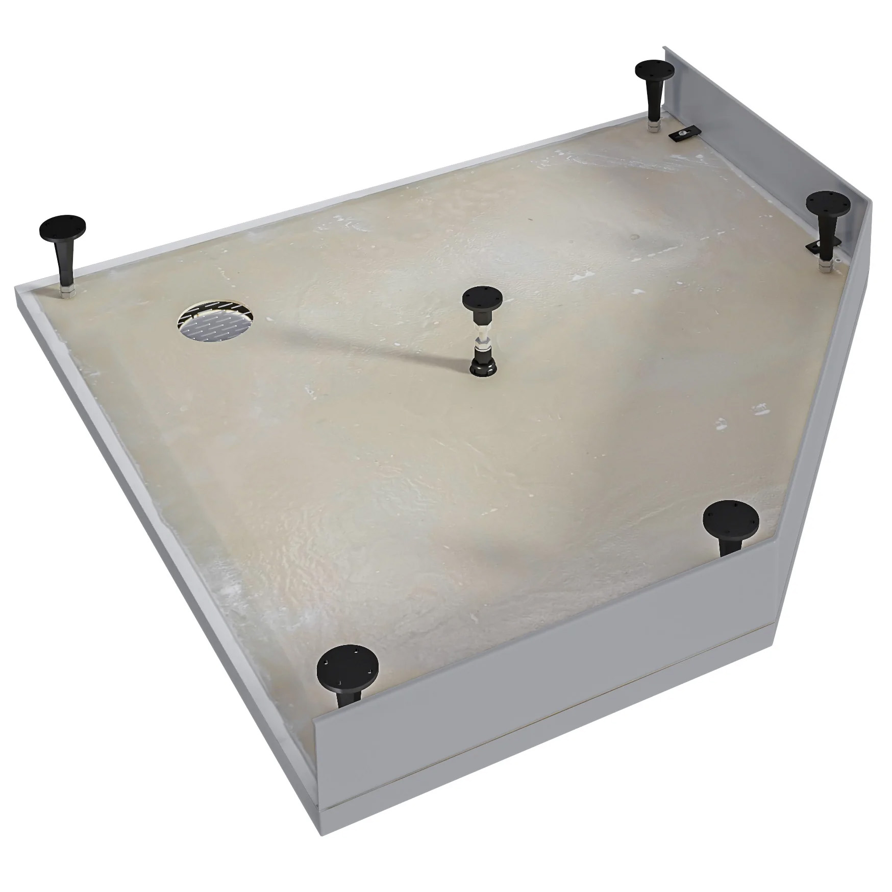 Поддоны из литьевого мрамора могут быть укомплектованы приставным экраном в цвет поддона, а также комплектом установочных ножек и сливом (диаметр отверстия под слив 90 мм). Благодаря своей правильной геометрии без прогибов, строгим линиям поддоны идеально подходят для установки Душевых ограждений группы компаний BAS.