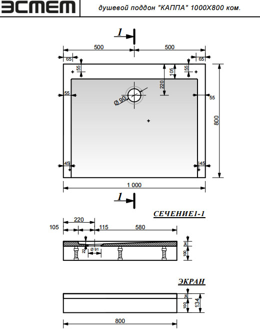 Поддон из литьевого мрамора Эстет Каппа 100х80 см ФР-00000961