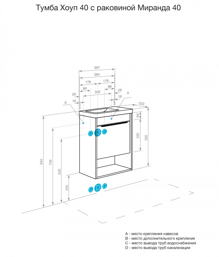 | Раковина | Santek Миранда 40 санфаянс/ приобретается отдельно |