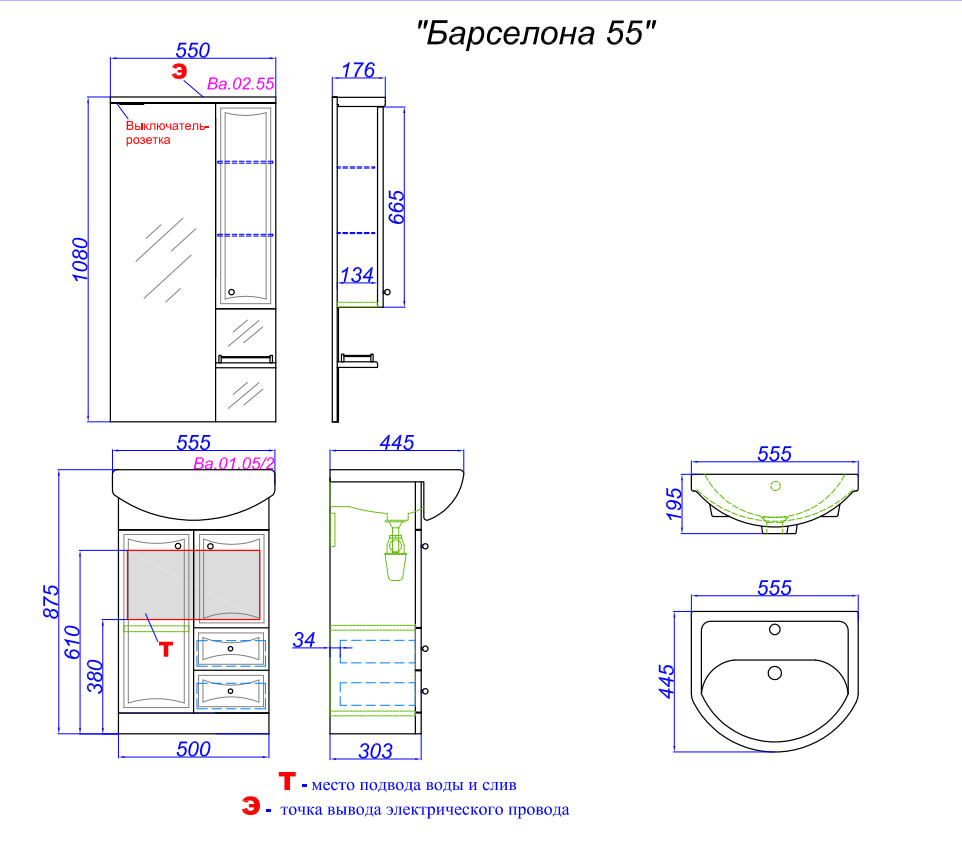 Тумба под раковину Aqwella Barcelona 55 см Ba.01.05/2