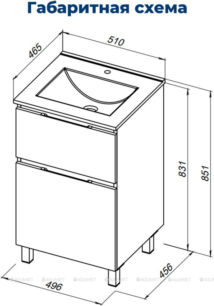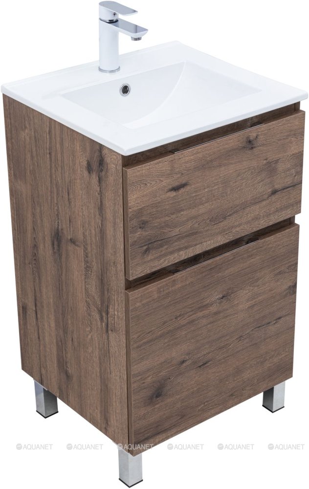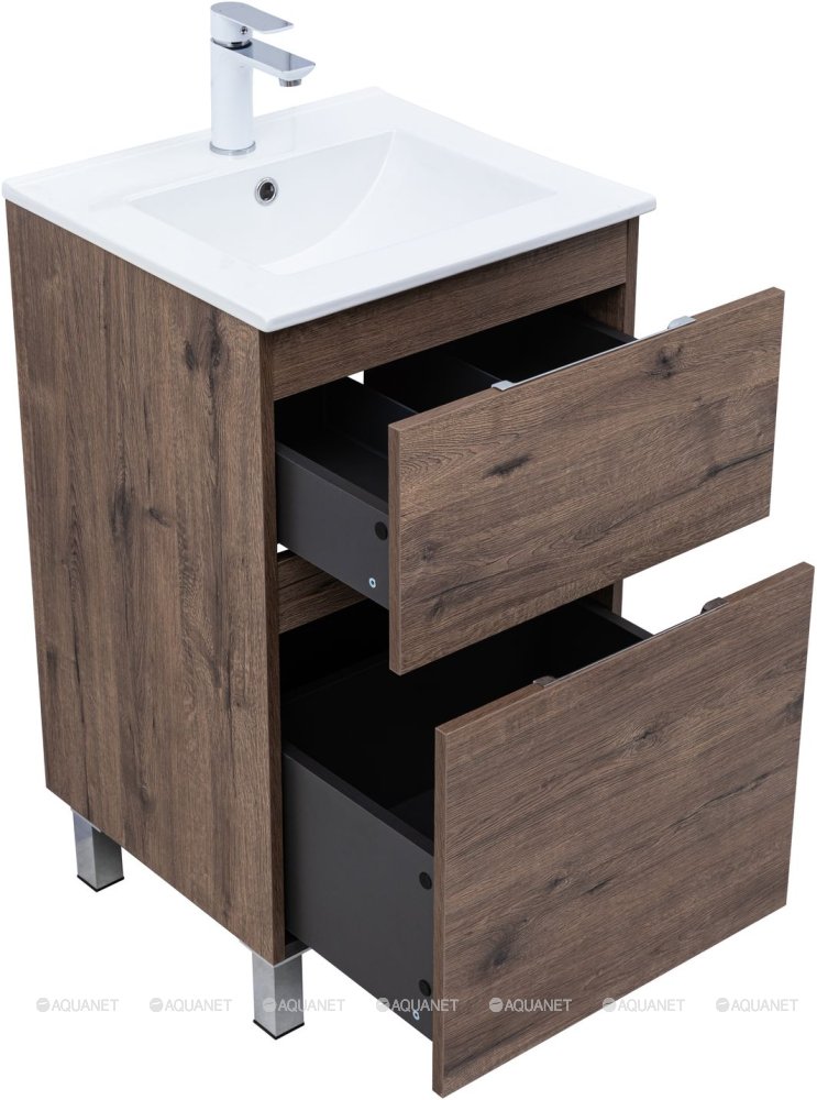 Тумба под раковину напольная Aquanet Алвита New 50 см 2 ящ дуб веллингтон табак 344126
