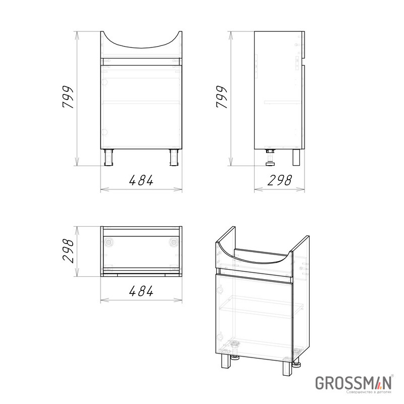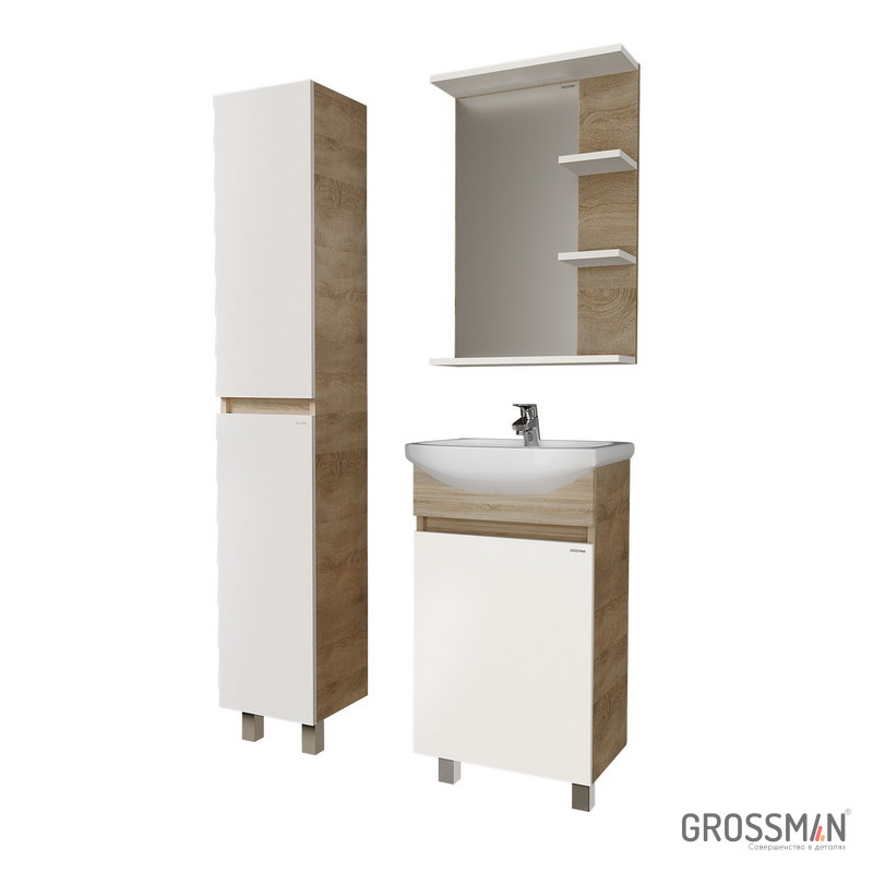 Тумба под раковину напольная Grossman Поло 50 см (Уют) дуб сонома/ белый 105004-1