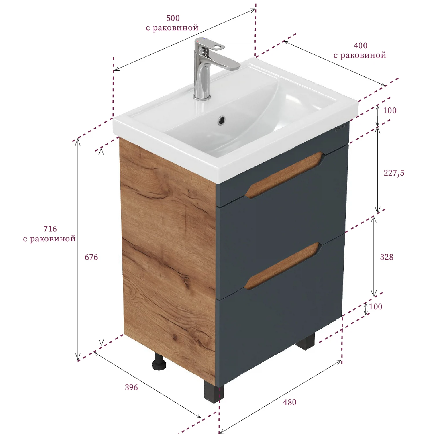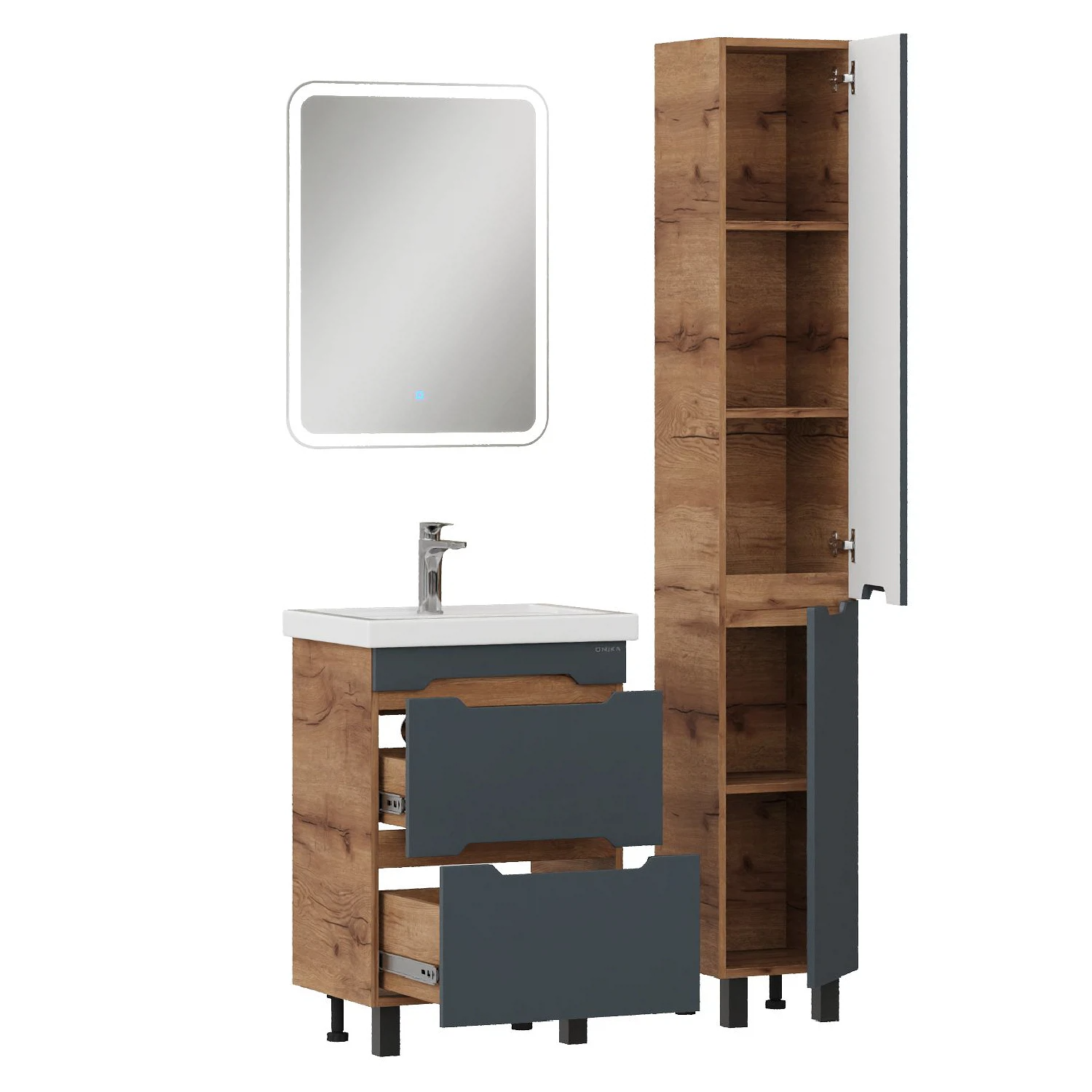 Тумба под раковину напольная Onika Айленд 50 см (Кirovit Фостер) графит/дуб крафт золотой 105042