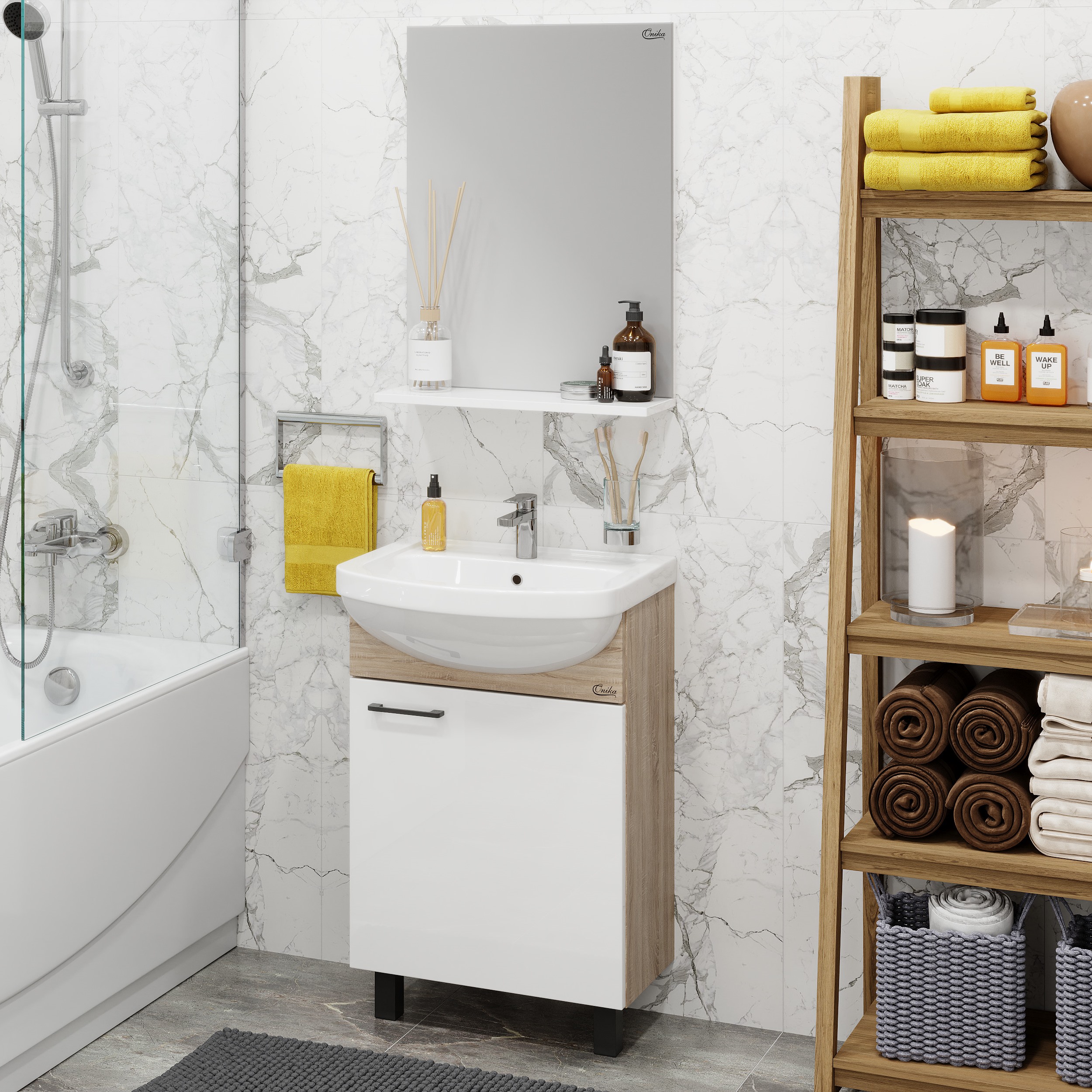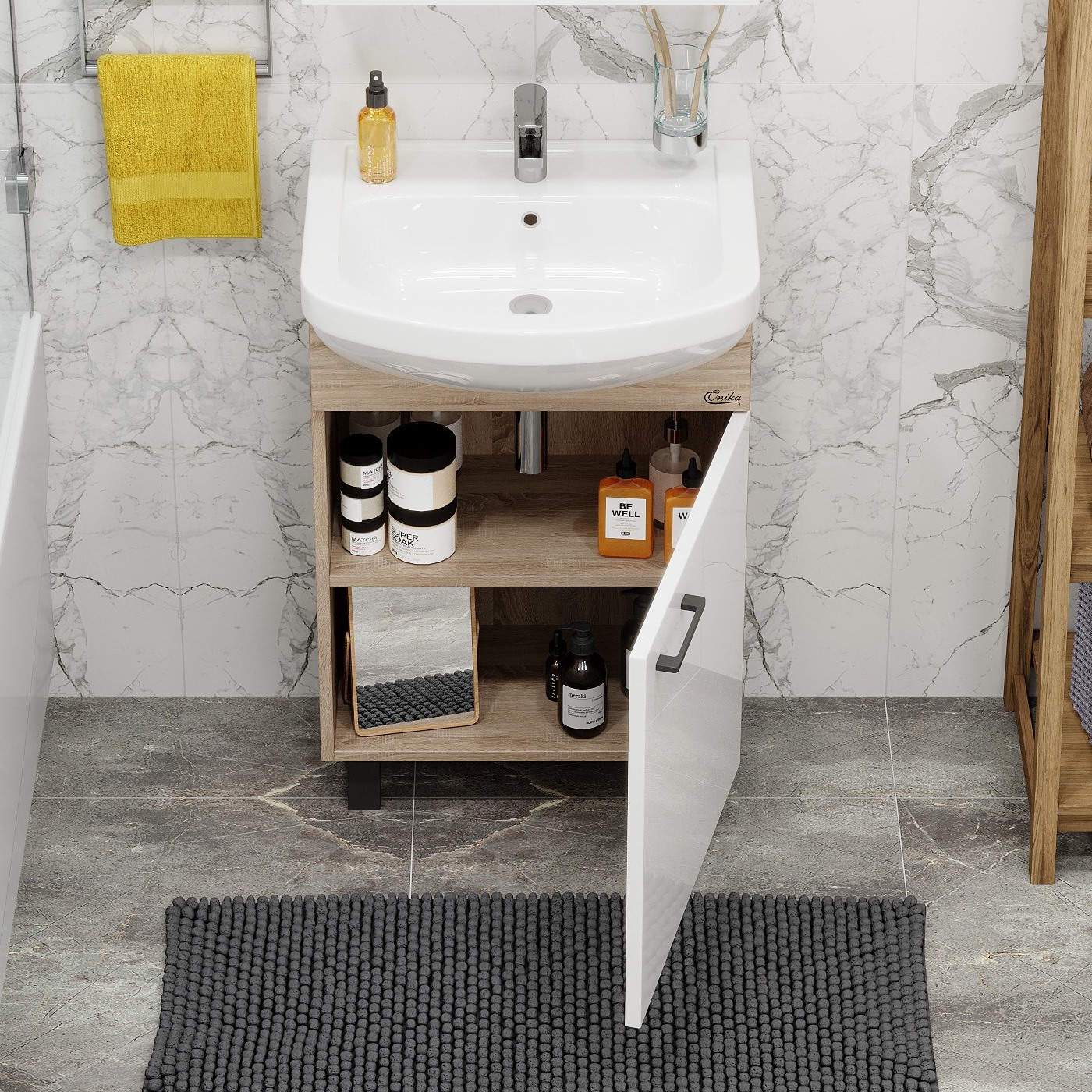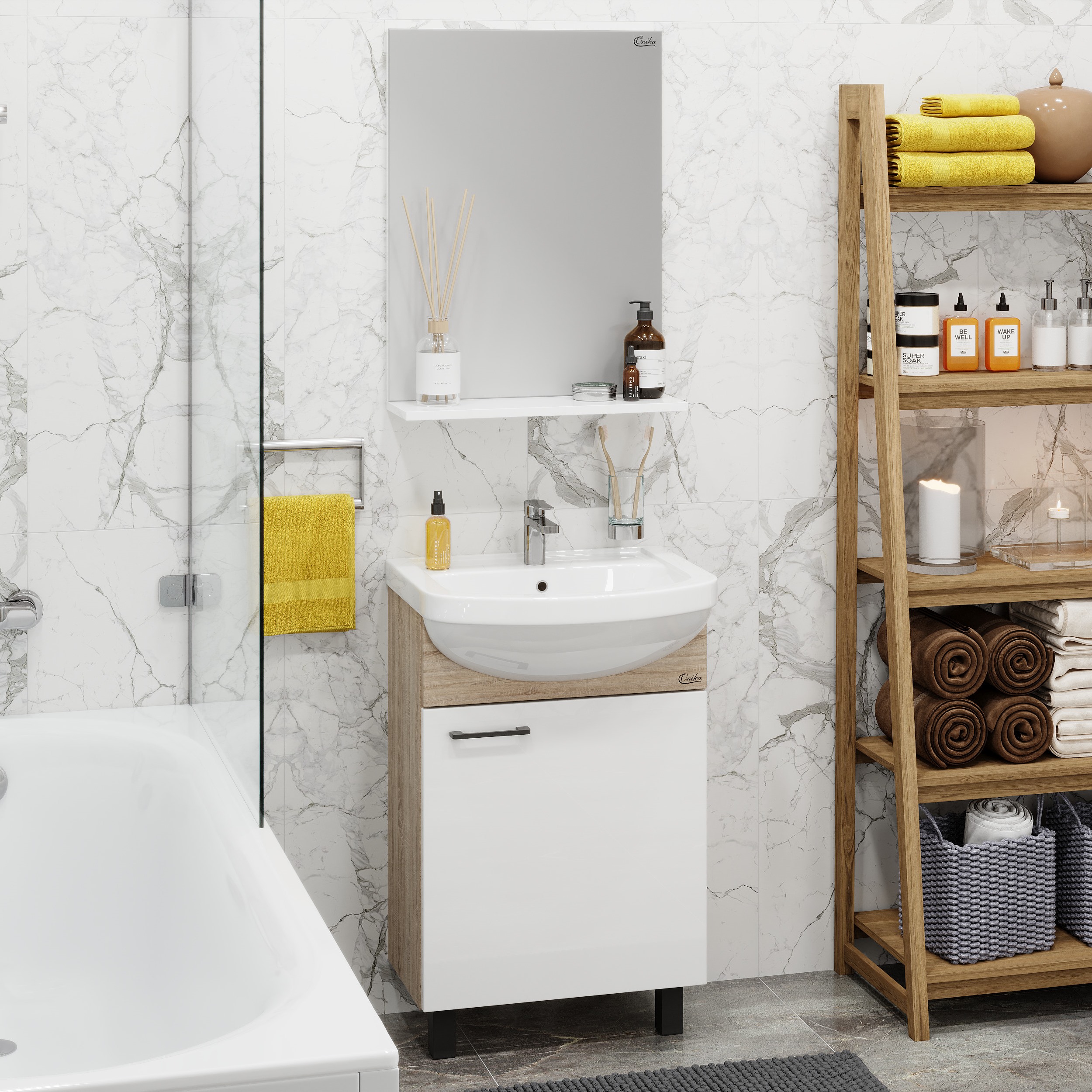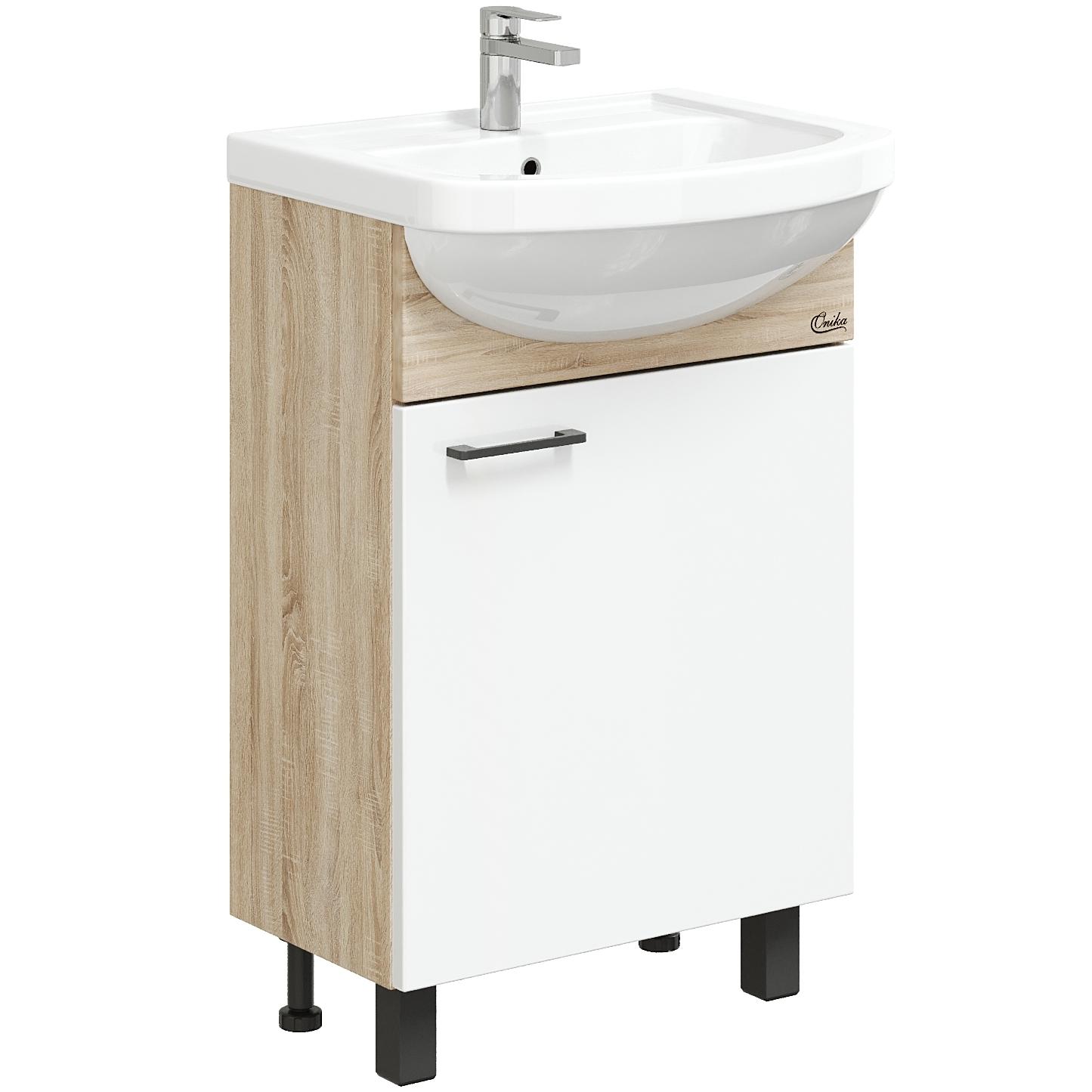 Тумба под раковину напольная Onika Эко 52 см Black (Santeri Акватон) белый/дуб сонома 105208