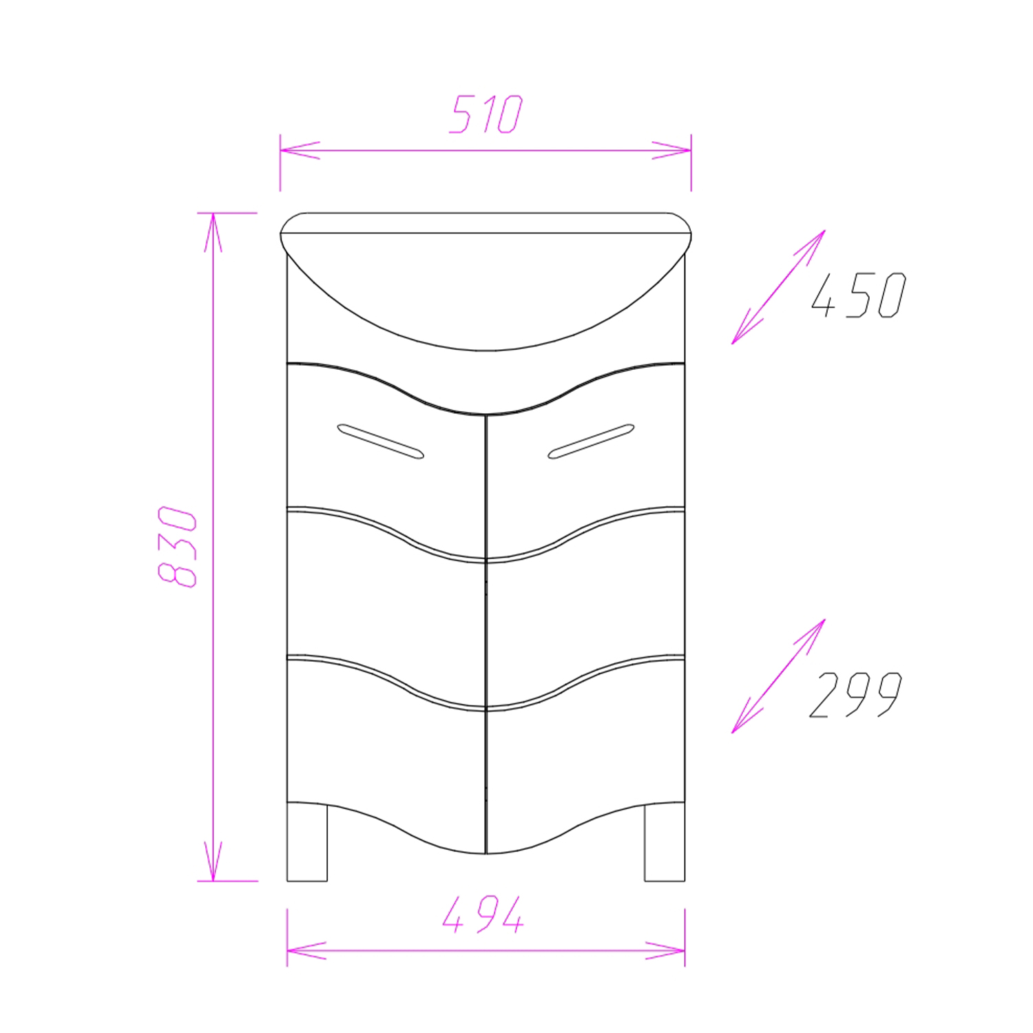 Тумба под раковину напольная Onika Лайн 50 см (Rosa Уют) белый 105007