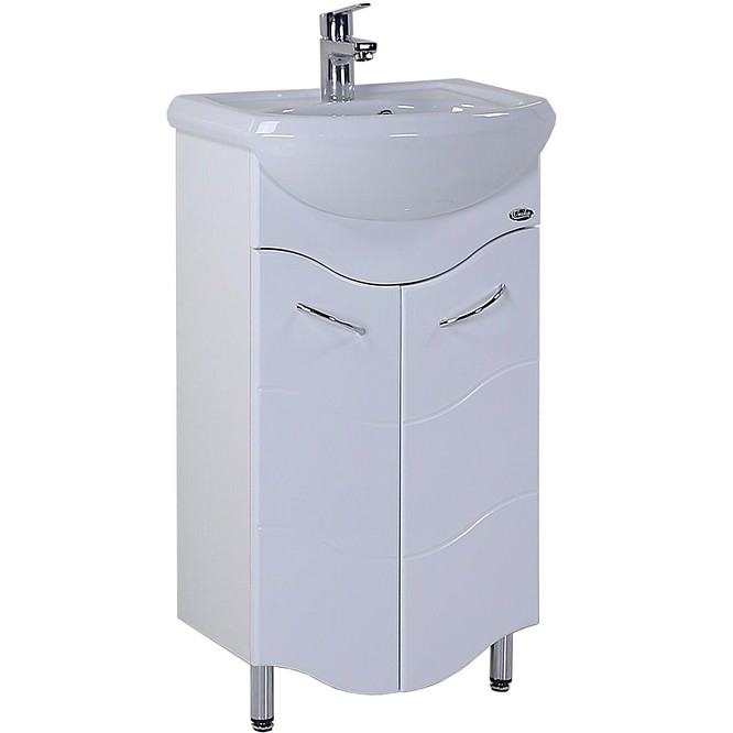 Элегантная напольная белая глянцевая тумба Onika Лайн 50 - выгодное решение для оптимизации ванной комнаты. Тумба максимально удобна в использовании, не занимает много места, позволяет компактно разместить бытовые принадлежности. 2 распашных фигурных двери, оснащенные системой плавного закрывания, за которыми расположена полка, украшены изящной фрезеровкой. Корпус тумбы выполнен из ЛДСП, фасад - из ЛМДФ в пленке, устойчивых к механическим воздействиям, перепадам температур и высокой влажности. Две хромированных ручки и 4 ножки (2 декоративных и 2 пластиковых) с регулировкой по высоте идут в комплекте с тумбой.