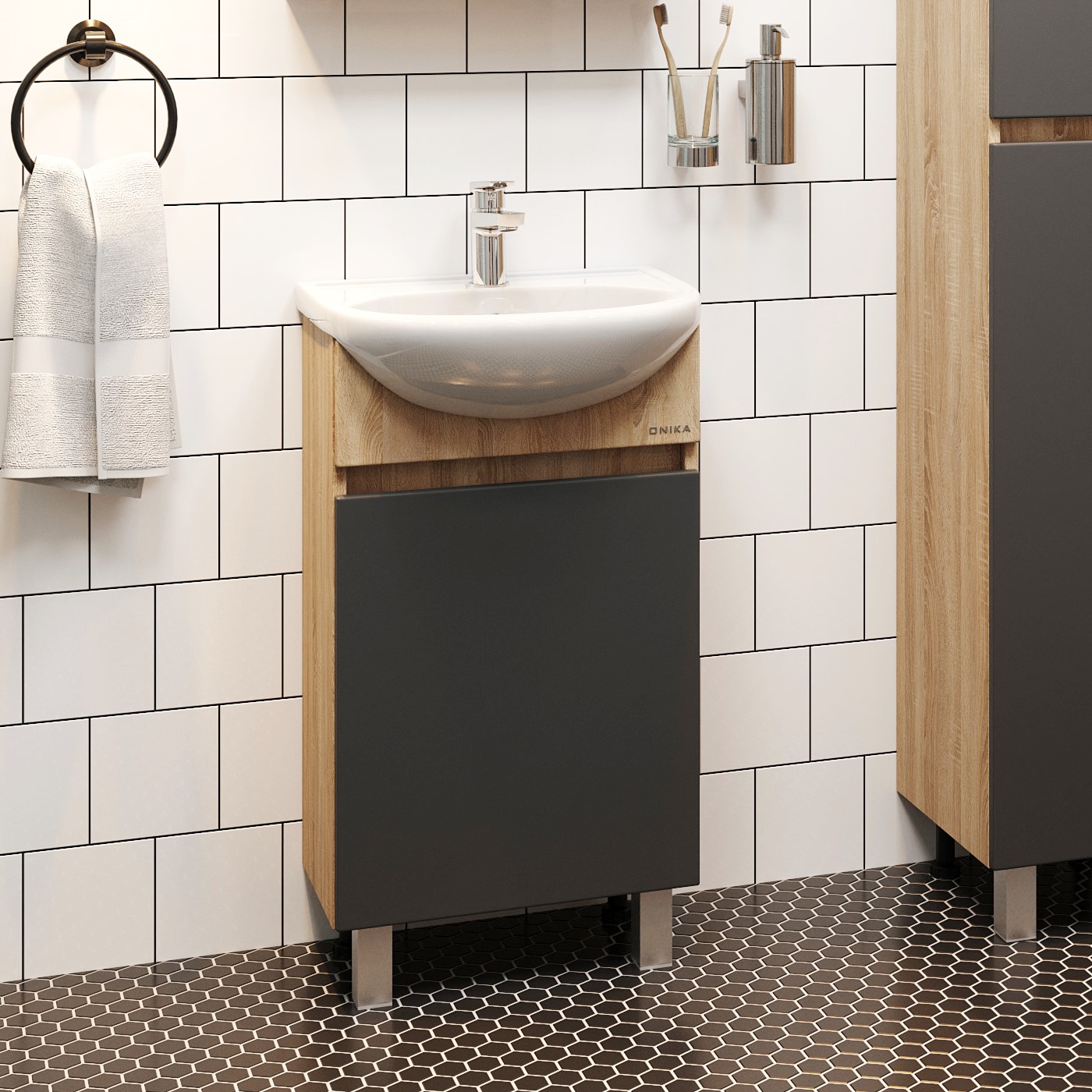 Тумба под раковину напольная Onika Милтон 45 см (Rosa Уют) серый/дуб сонома 104512