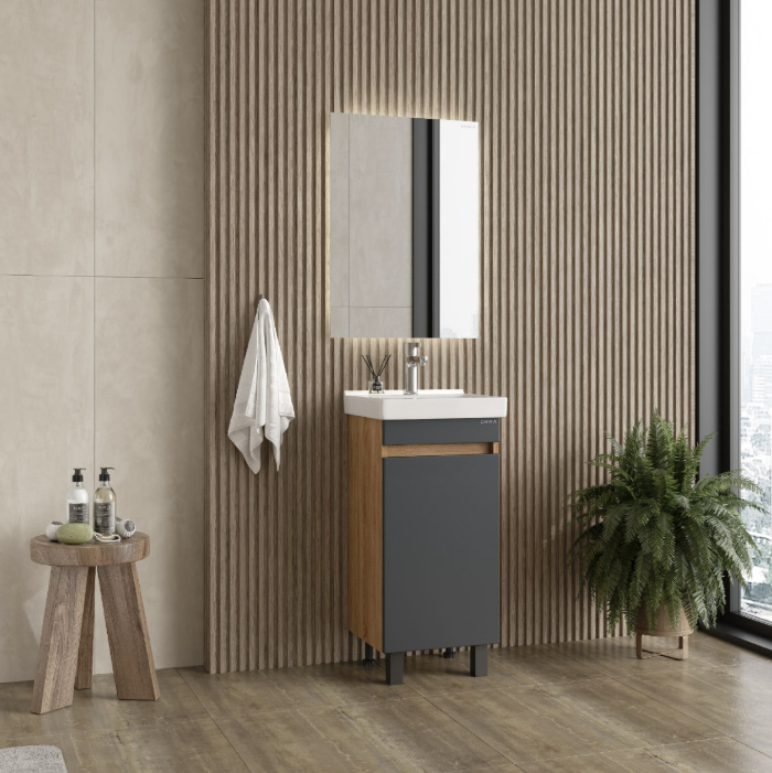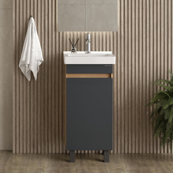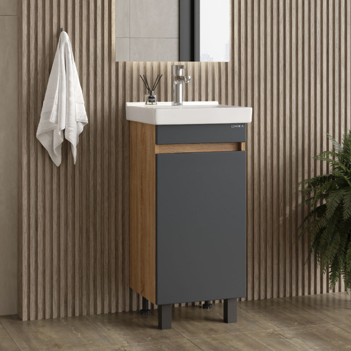 Тумба под раковину напольная Onika Милтон Квадро 40 см (Santeri Визит) серый/дуб сонома 104013