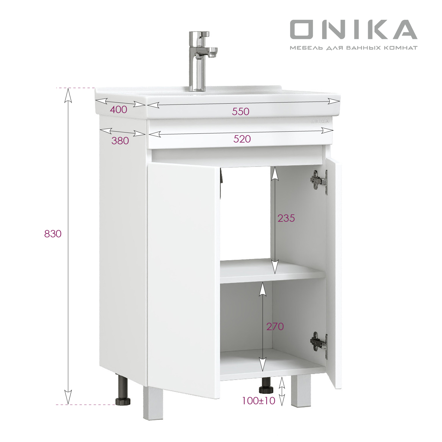Тумба под раковину напольная Onika Милтон Квадро 55 см (Santeri Визит) белый 105561