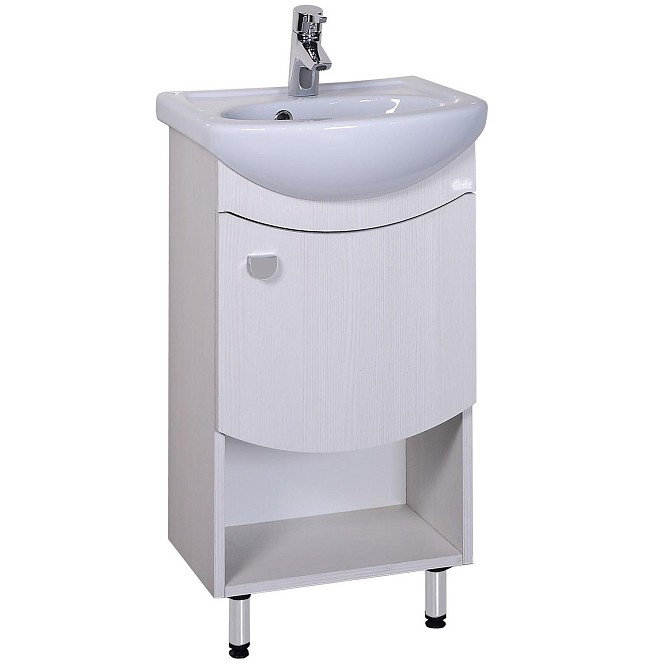 Напольная тумба Onika Селена 45 удобна, эргономична, идеально вписывается в окружающее пространство небольшой ванной комнаты. Открытая полка обеспечит быстрый доступ к часто используемым аксессуарам, а пространство за распашной дверцей с системой плавного закрывания станет удобным местом для хранения различных бытовых принадлежностей. Тумба выполнена из ЛДСП, устойчивой к механическим воздействиям, перепадам температур и высокой влажности. Хромированная ручка и 4 ножки (2 декоративных и 2 пластиковых) с регулировкой по высоте идут в комплекте с тумбой.