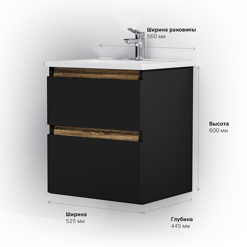 - Тумба под раковину подвесная AM.PM X-Joy 55 см черный матовый M85AFHX0552BM