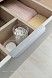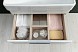Особое внимание уделено безопасности: скругленные углы раковины и мебели минимизируют риск травм, что особенно важно в семьях с детьми. Направляющие скрытого монтажа с доводчиком обеспечивают плавное и бесшумное закрытие дверец, что добавляет комфорта в повседневное использование.