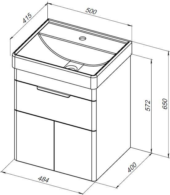 Тумба под раковину подвесная Aquanet Ирис NEW 50 см (2ящ) белый глянец 310143