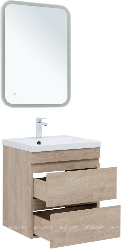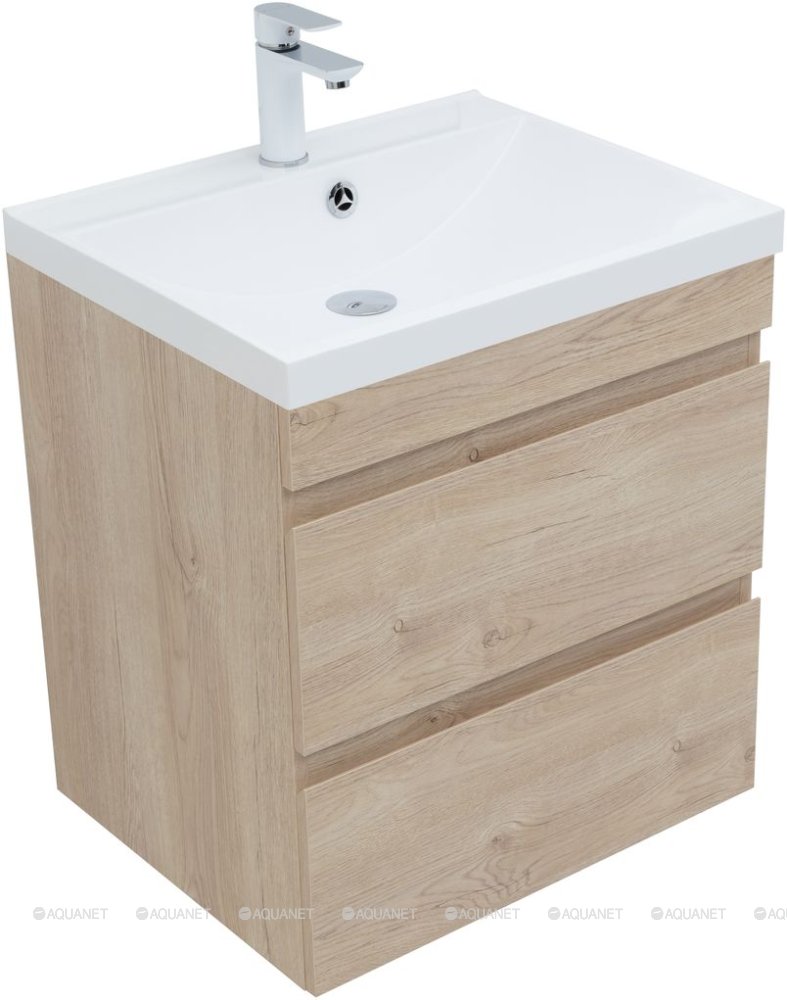 Тумба под раковину подвесная Aquanet Нота NEW 58 см дуб светлый 334197