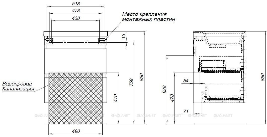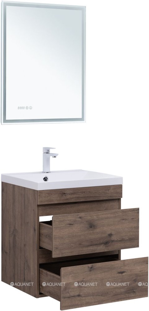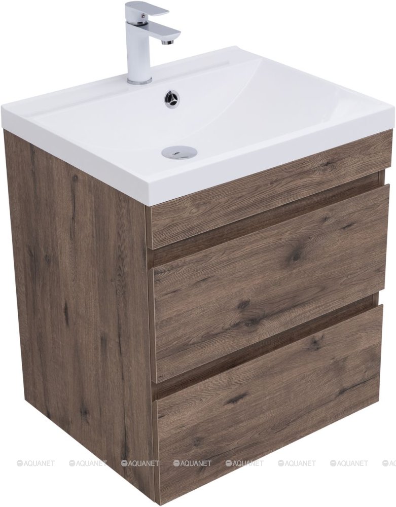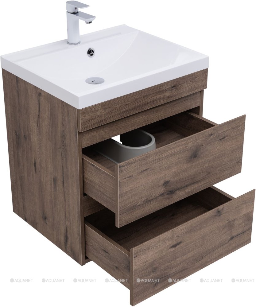 Тумба под раковину подвесная Aquanet Нота NEW 58 см дуб веллингтон табак 334191