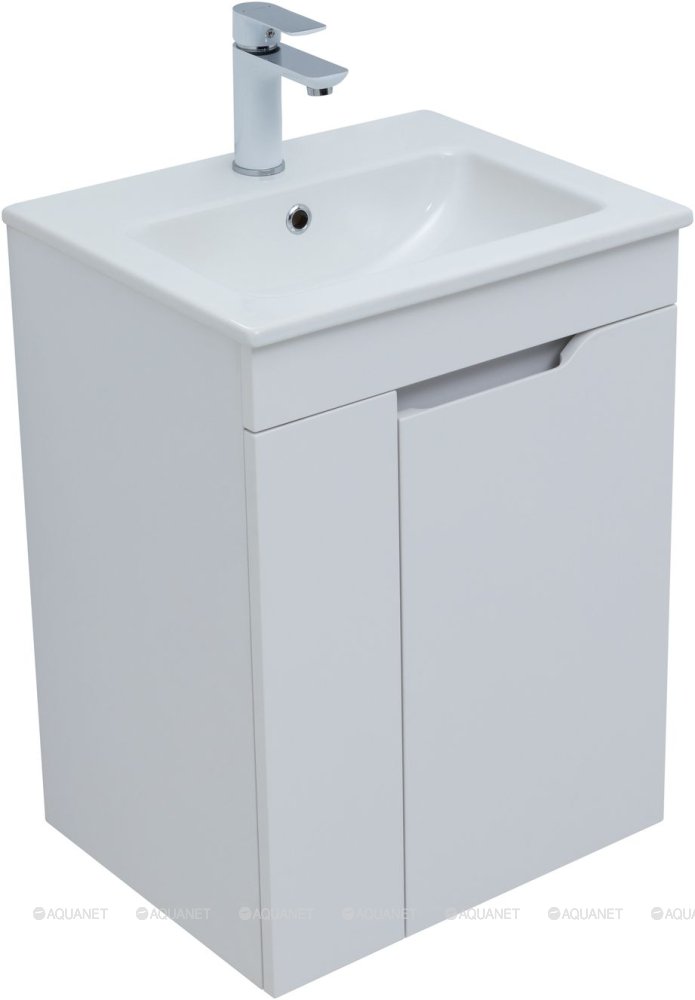 Тумба под раковину подвесная Aquanet Практика 50 см 2 дв белый матовый 330451
